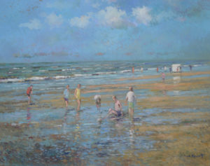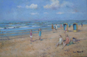 A.C. van Noort, named Arie-Kees, was born on 8 March 1914 in Bennebroek, Holland. After his school time in 1928 he took part in the painting company of his father. In the evenings he attended drawing and painting lessons of the eccentric Haarlem painter Henri Fréderic Boot who taught and shaped great artists like Kees Verwey and Anton Heijboer. During the day, Van Noort worked as house painter and in the evenings he painted in his room. Although beach scenes and, to a somewhat lesser degree, flower fields formed the main part of his work, he also painted city scapes, landscapes and still lifes. He preferred going out with his donkey and painters box to capture his world. In 1942, he was accepted as a member of the society Kunst zij ons Doel. Exhibitions in Basel, Knokke, Geneva and Paris were well received by the general audience. A.C van Noort is seen as the last representative of the Hague School or as impressionist painter in the French line. A.C. van Noort died on Sunday 29 June 2003.